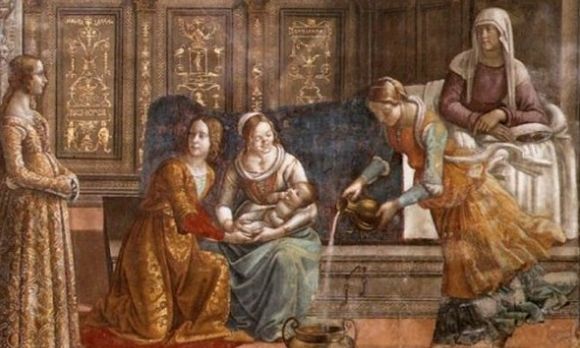 A szűz neve Mária volt. Az angyal belépett hozzá és így szólt: „Üdvöz légy, kegyelemmel teljes! Az Úr veled van! Áldottabb vagy te minden asszonynál!” Ennek hallatára Mária zavarba jött, és gondolkodóba esett, hogy miféle köszöntés ez.